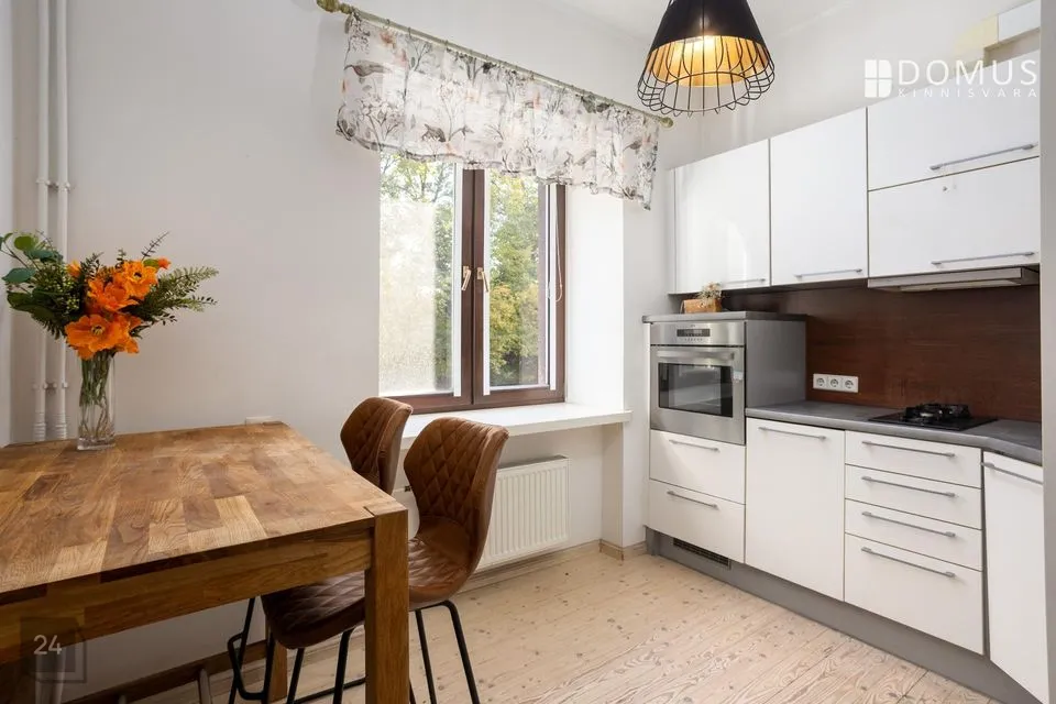 Köögilaua taga hommikukohvi juues ning pilku aknast välja suunates võid unustada, et Sinu kodu asub linna südames - vaade on imeliselt looduslik ning esimesed uudishimulikud naaberaknad väga kaugel. Mõlemad magamistoad on eraldi ning nende vahel asub avar elutuba, kus saab muinasjutte lastele vesta elava tule paistel kamina ees pikutades. See on tõeline kodu inimesele, kes hindab linna mugavat eluviisi ja soovib seda nautida ainulaadsemas versioonis.
