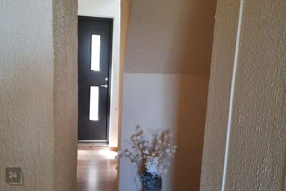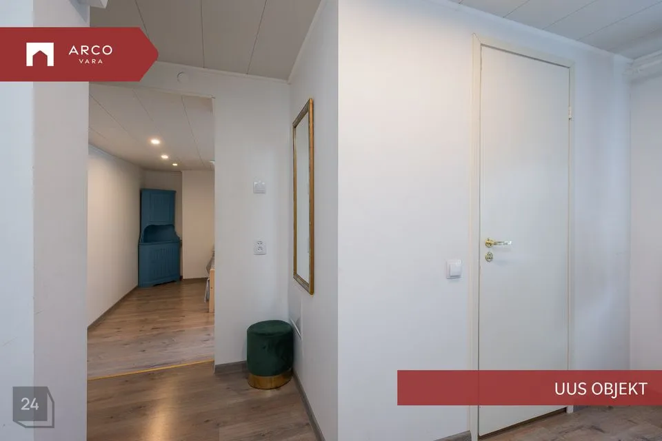 Korteri seinad on värvitud heledates toonides. Põrandatel laminaatparkett.
