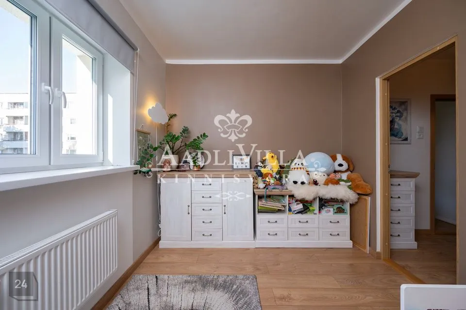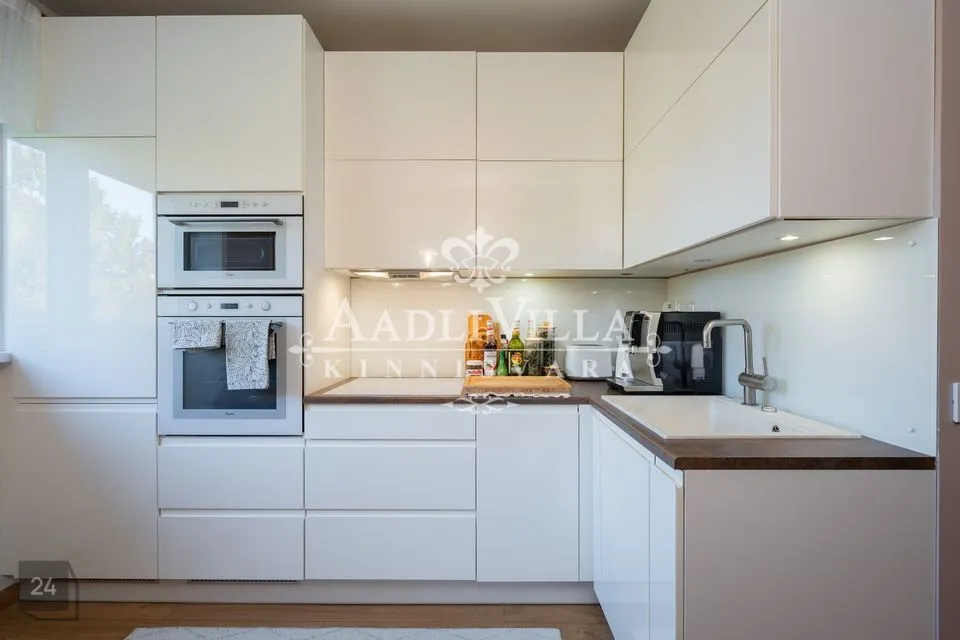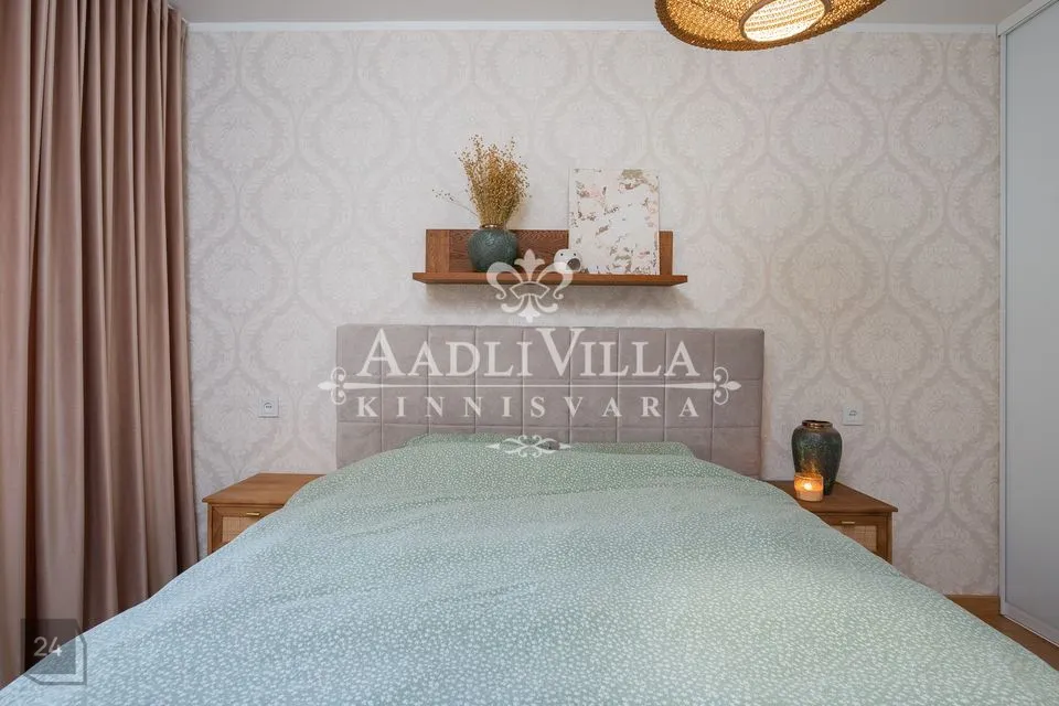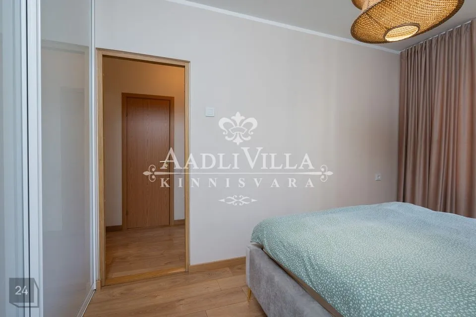 Müügihinnas: köögimööbel koos intrigeeritud köögitehnikaga (pliit, praeahi, õhupuhasti, nõudepesumasin, külmkapp), elutoas diivan, lükandustega garderoobikapid magamistoas ja elutoas, vannitoa sisseehitatud mööbel, valgustid, rulood, kardinad va magamistoas.