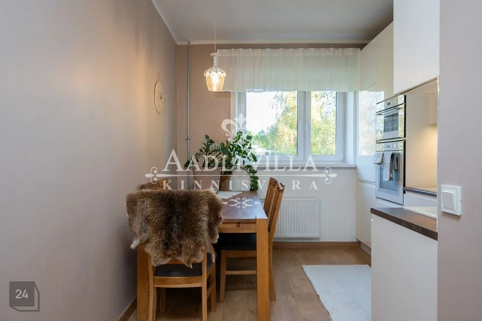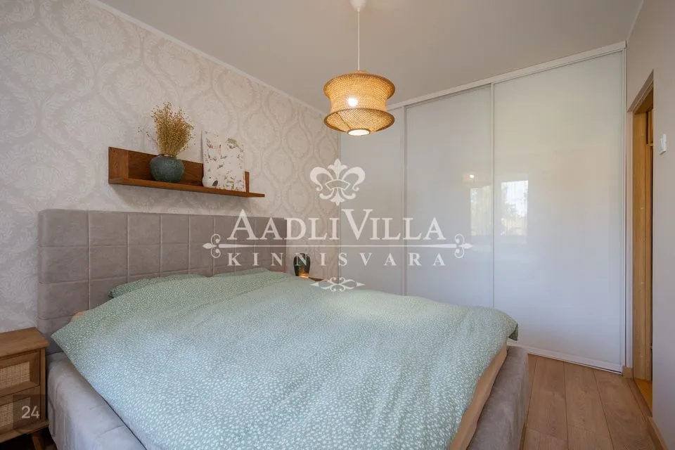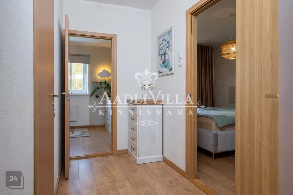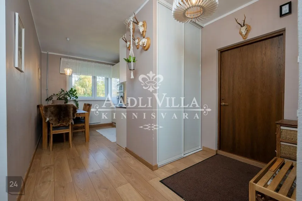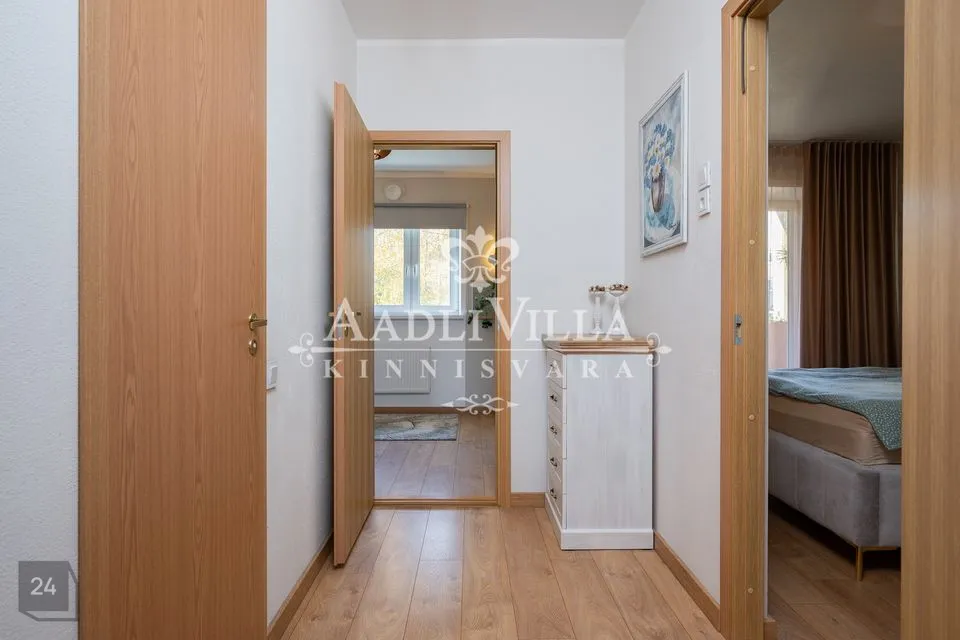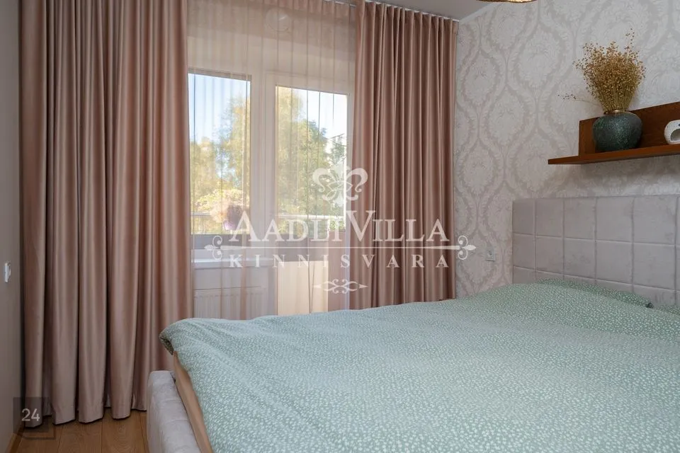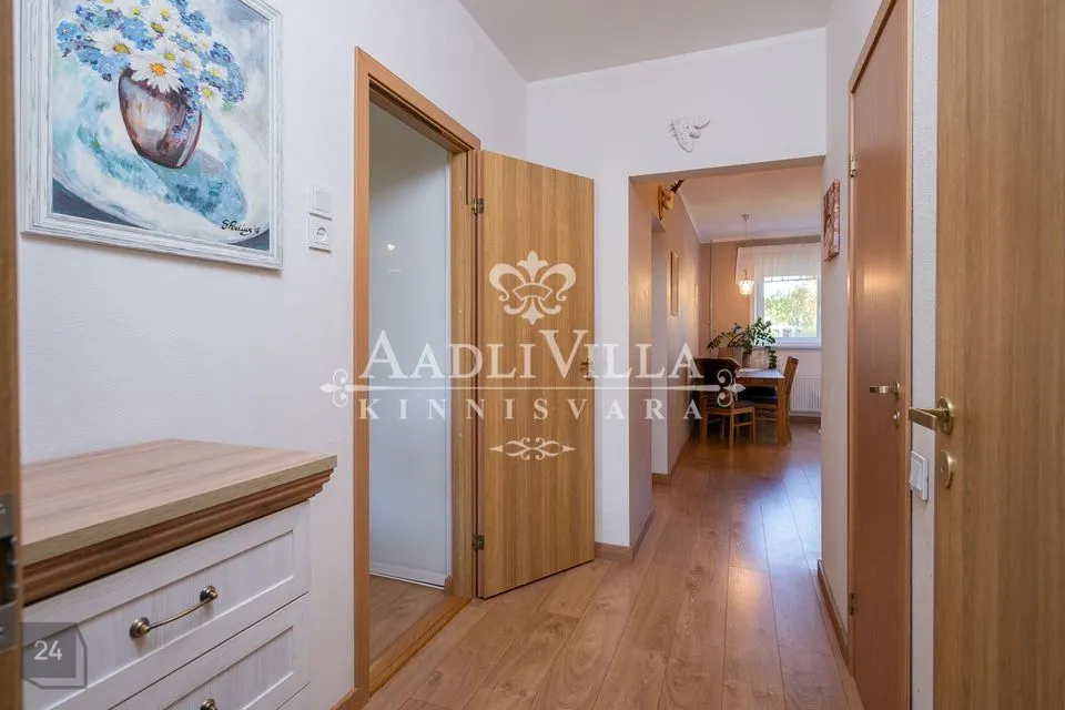 Korteril pvc aknad, põrandad kaetud naturaalse parketiga, wc/duširuumis põrandad kaetud keraamiliste plaatidega ja seinad värvitud.