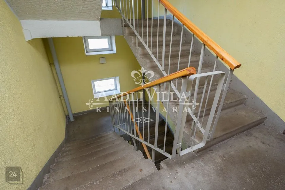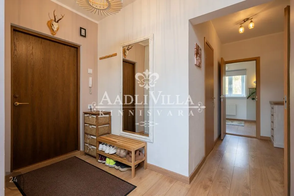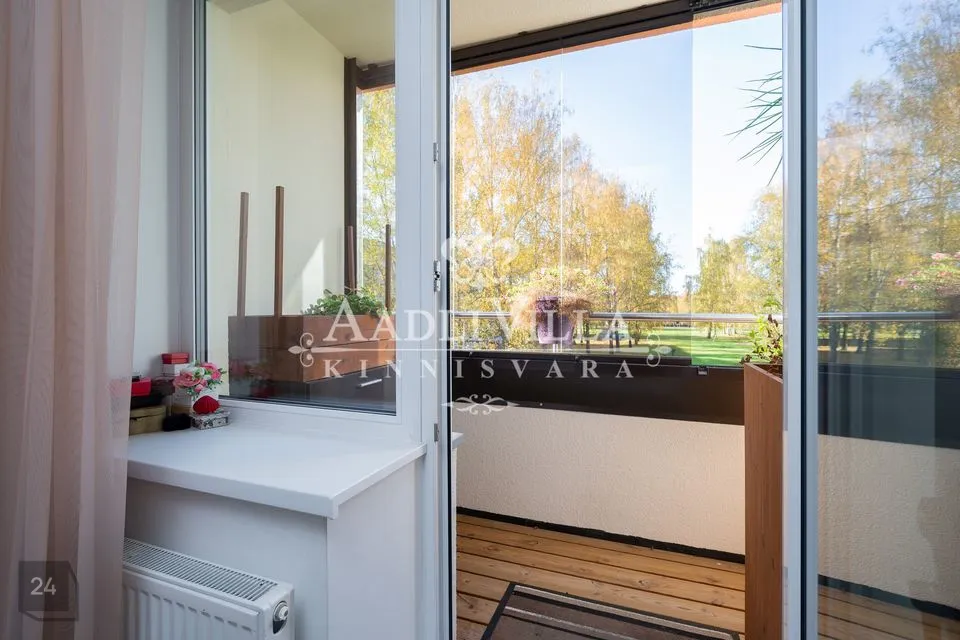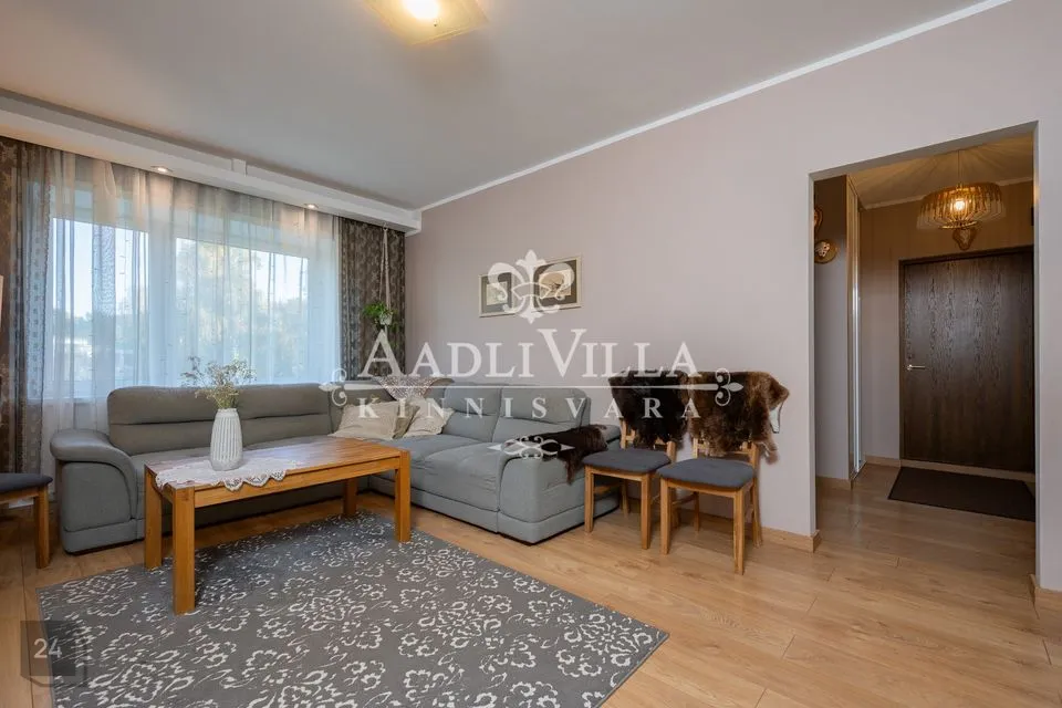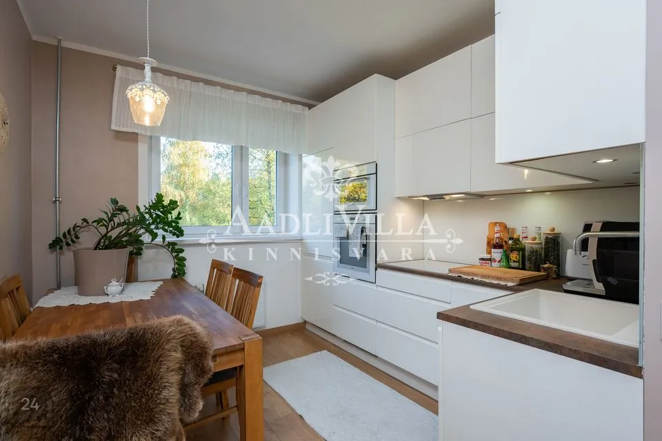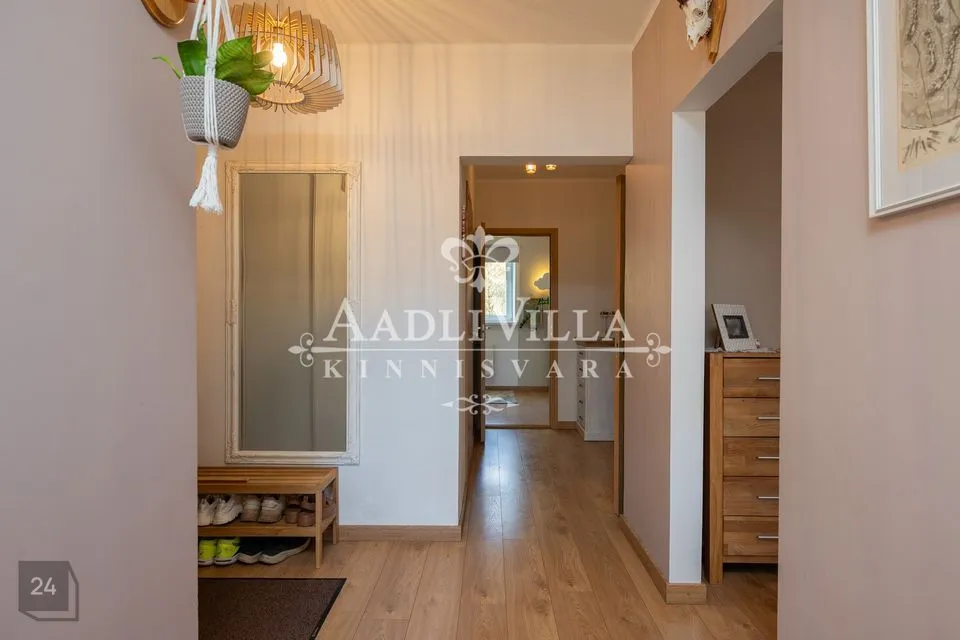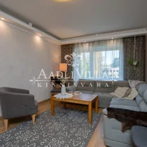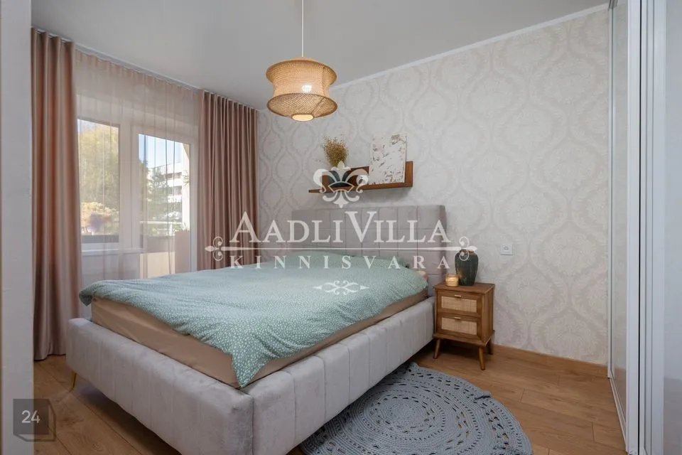 Korteril pvc aknad, põrandad kaetud naturaalse parketiga, wc/duširuumis põrandad kaetud keraamiliste plaatidega ja seinad värvitud.