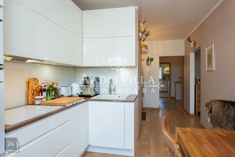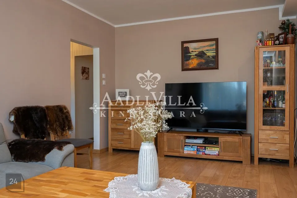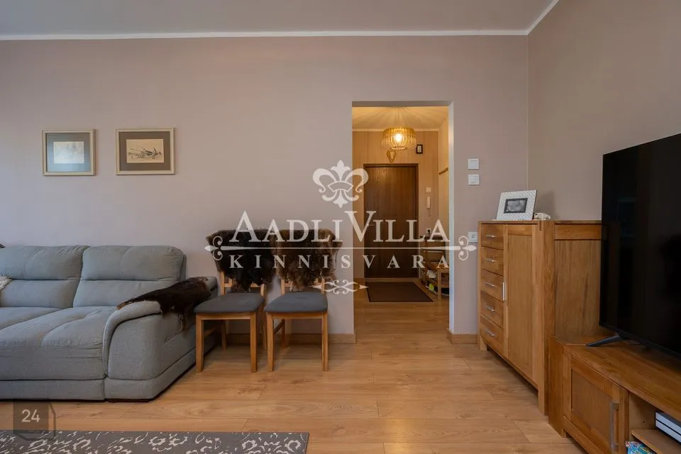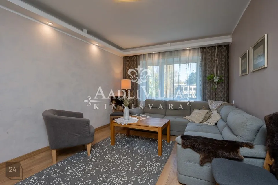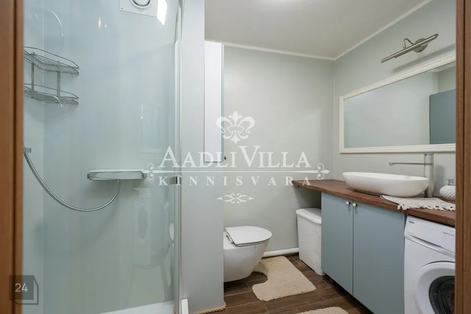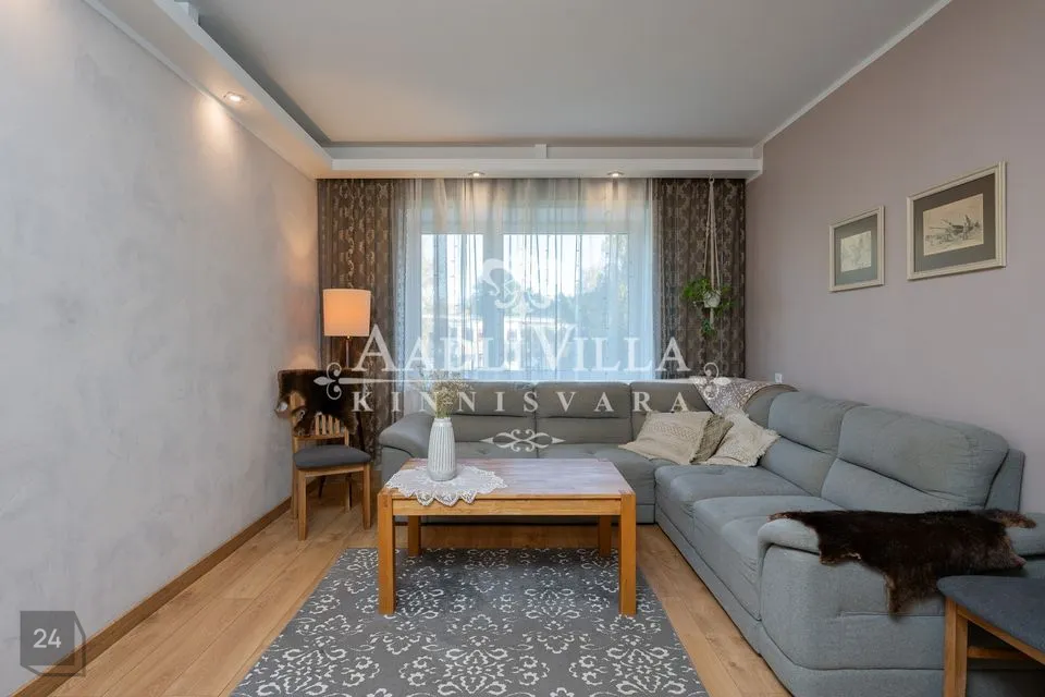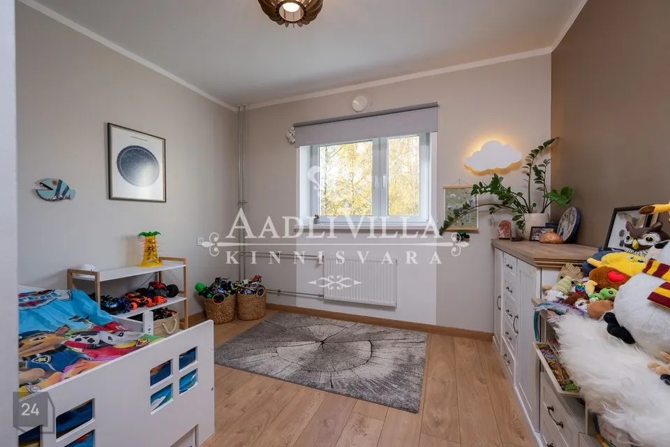 Korteril pvc aknad, põrandad kaetud naturaalse parketiga, wc/duširuumis põrandad kaetud keraamiliste plaatidega ja seinad värvitud.