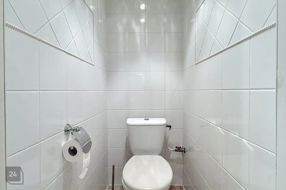 Vannitoa ja tualettruumi seinad ning põrand on viimistletud keraamiliste plaatidega.