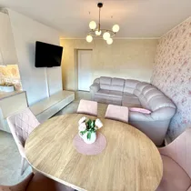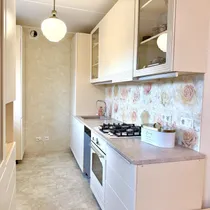 Viimistluses on kasutatud heledaid ja pastelseid värvitoone, mis lisavad korterile hubasust ja soojust.