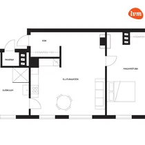 Korteri koosseisu kuulub esik, avatud köögiga elutuba, magamistuba ning avar duširuum.