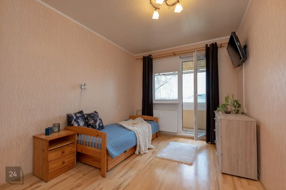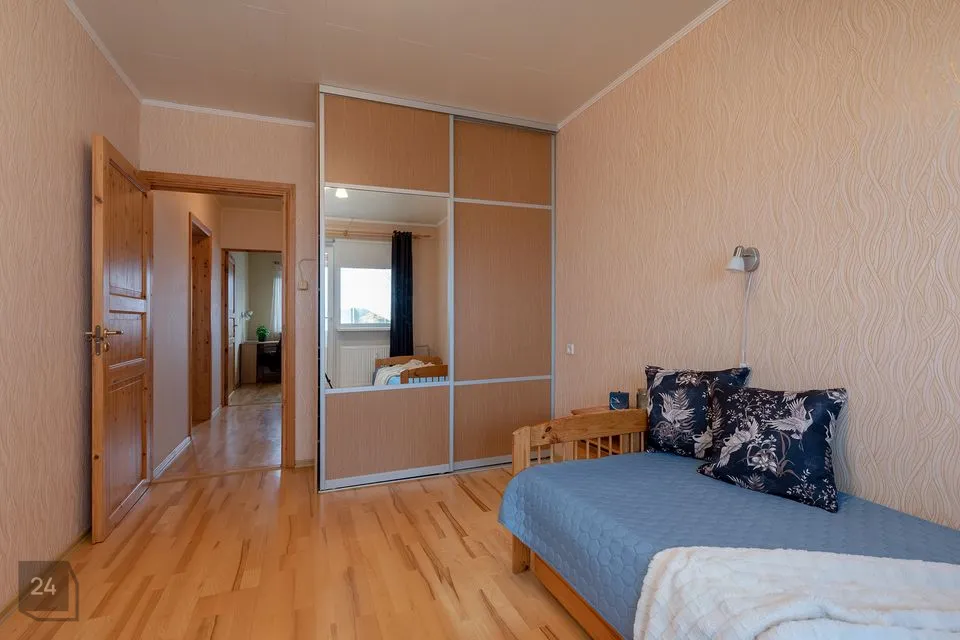 Korter paikneb vaiksel viiendal korrusel. Rõduga toa akna all on kasvamas suur kasepuu, mille ladvaoksad on rõdult näha. Magamistoad paiknevad eraldi. Elutuba on läbikäidav. Remont on tehtud mõned aastad tagasi. Kõik välis- ja siseuksed on vahetatud. Tubade seintel tapeet. Põrandatel naturaalne puitparkett.