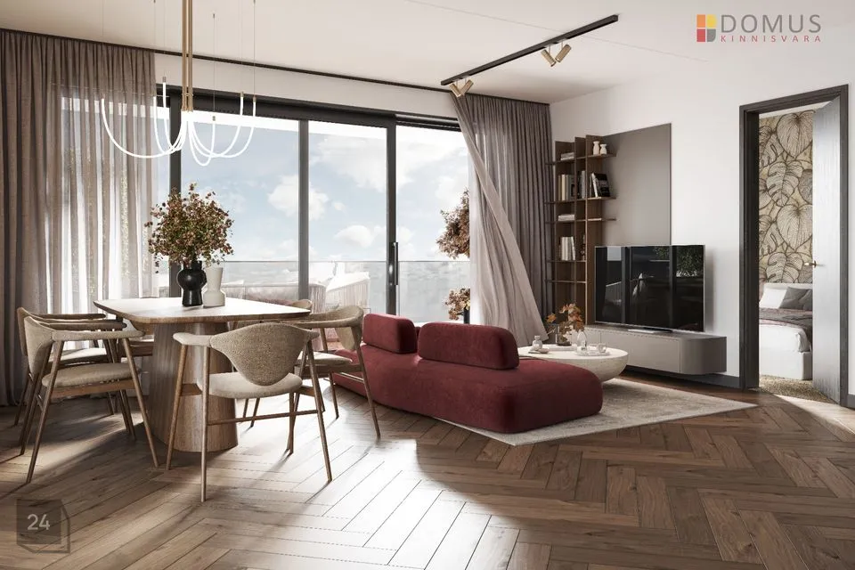 Selles penthouse’is kohtuvad luksus ja praktilisus. Kodu südameks on avatud köögi ja elutoaga keskne eluruum (31,5 m²), kust avaneb pääs suursugusele katuseterrassile (19,8 m²), mille suund on läände Emajõe poole – ideaalne õhtupäikese ja kaunite vaadete nautimiseks. Korteris on kolm eraldiseisvat magamistuba: 13,8 m², 11,2 m² ja 12,1 m² – millest kahele väiksemale lisab funktsionaalsust ja eksklusiivsust katuseaken-rõdusüsteem. Suurema magamistoa juurde kuulub ka ruumikas garderoobi osa ja privaatne pesuruum (3,1 m²), lisaks on magamistoast pääs ka katuseterrassile. Esik (5,3 m²) juhatab edasi koridori (1,9 m²), mille kaudu pääseb pesuruumi (4,4 m²) ning praktilisse majapidamisruumi (3,6 m²), mis aitab argipäeva sujuvalt korraldada. Hästi läbi mõeldud planeering, kõrged laed ja privaatne terrass muudavad selle penthouse’i tõeliselt eriliseks.