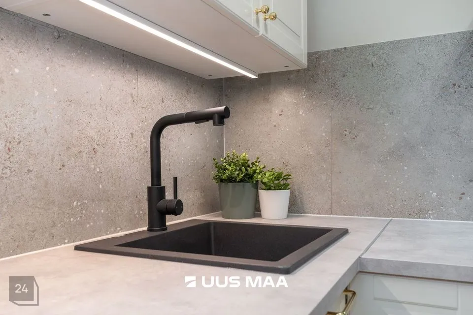 Köök sisaldab köögimööblit ja tehnikat: Külmkapp koos jahutuskapiga, õhupuhasti, nõudepesumasinat, ahju ja keraamilist pliidiplaati. Köögis on ruumi ka suurmale söögilauale.
