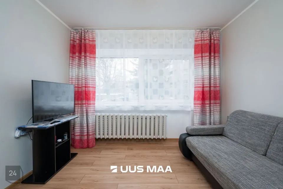Tubade seinad on värvitud hubastes heledates toonides, muutes korteri avaraks ja valgusküllaseks. Köögi seinad osaliselt plaaditud ja värvitud, üks sein tapeeditud. Põrandaid katab laminaatparkett. Sanitaarruumi seinad ja põrand on kaetud keraamiliste plaatidega. Põrandaid katab laminaatparkett. Sanitaarruumi seinad ja põrand on kaetud keraamiliste plaatidega.