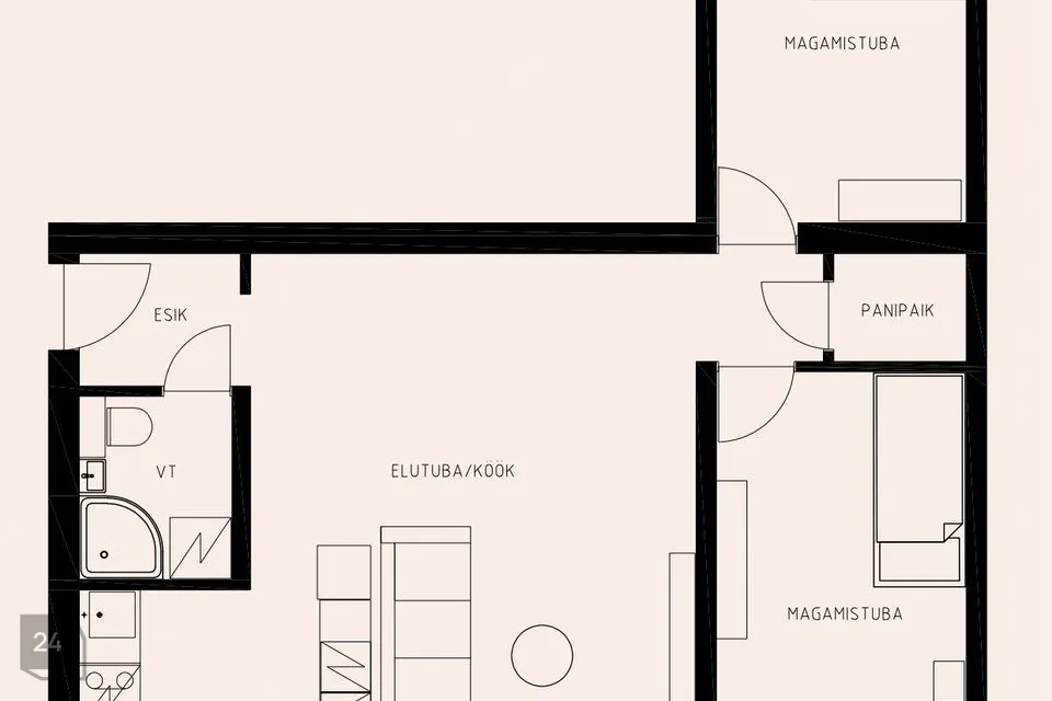 • kaks magamistuba korteri ühes otsas
