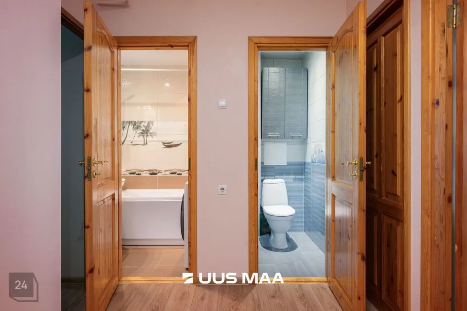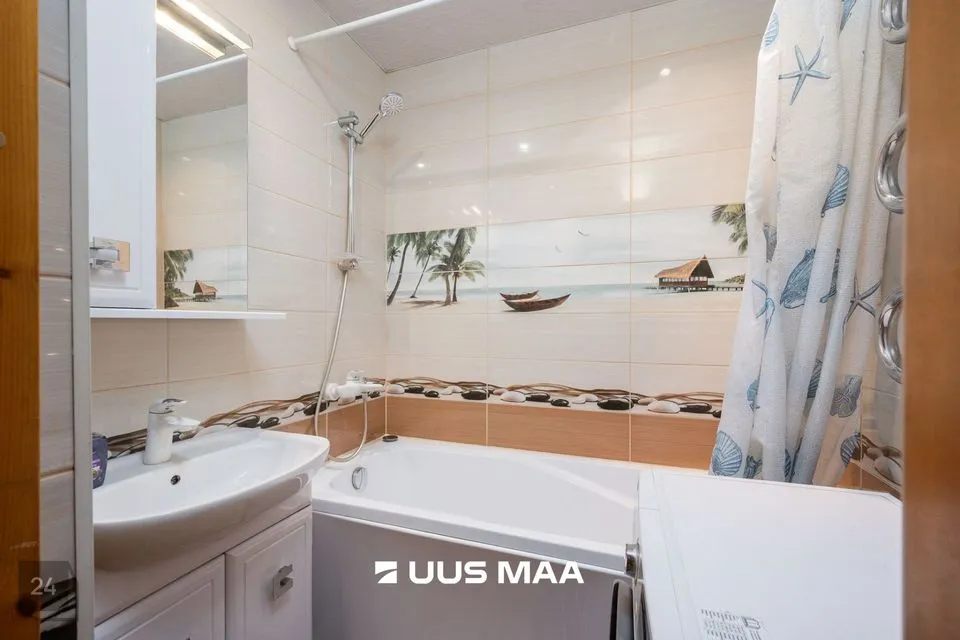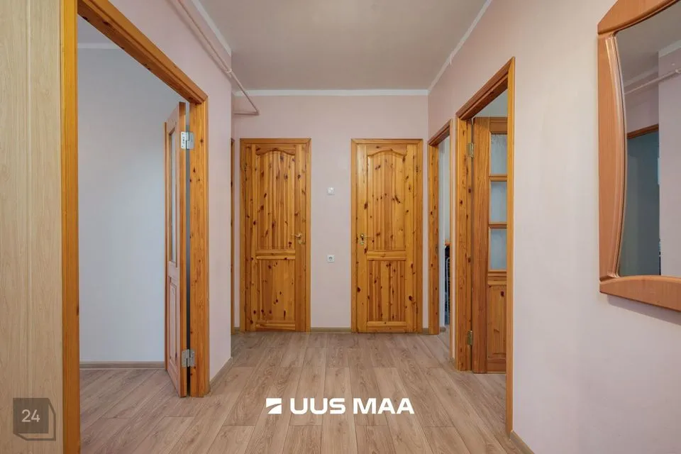 Tubade seinad on värvitud hubastes heledates toonides, muutes korteri avaraks ja valgusküllaseks. Köögi seinad osaliselt plaaditud ja värvitud, üks sein tapeeditud. Põrandaid katab laminaatparkett. Sanitaarruumi seinad ja põrand on kaetud keraamiliste plaatidega.