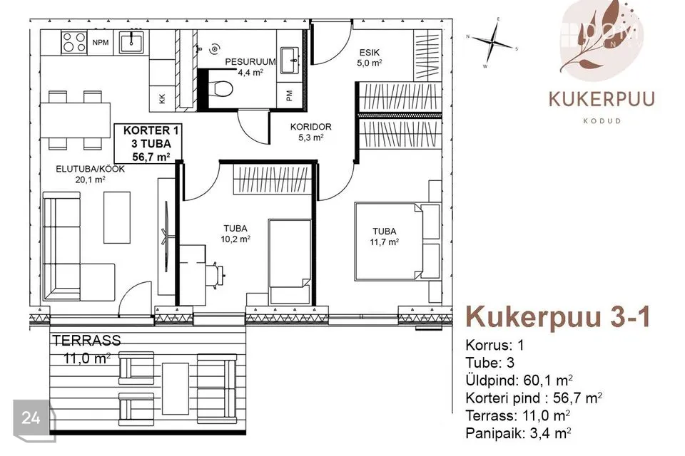 3-kordses kortermajas saab kokku olema 30 kahe- kolmetoalist korterit suurusega 42,8-65,5 m². Korterid valmivad 2026 aasta märtsis.