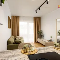 Korteril avar esik 4,3m², elutuba-köök 23,7m² kust avaralt terrassilt avaneb vaade lõuna poolse päikese suunas, pesemisruum 4,4m², magamistuba 10,5m².