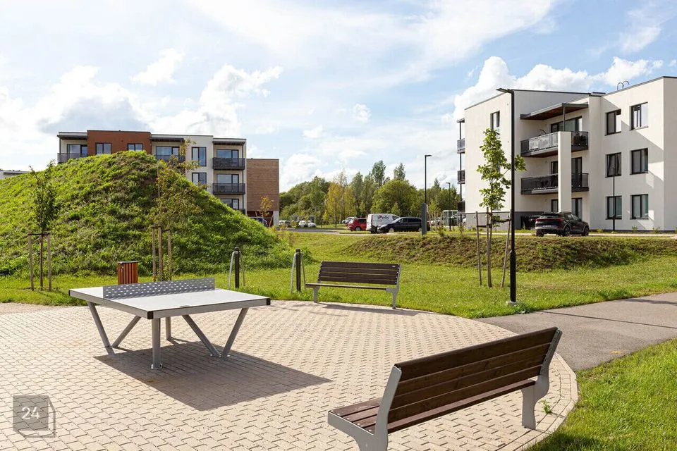 Korteri juurde kuulub keldrikorrusel asuv panipaik suurusega 5,8 m2 ja võimalus osta parkimiskoht (2000 €/tk, hind lisandub korteri hinnale). Hoovis ootab elanikke haljastatud mängu- ja puhkeala.
