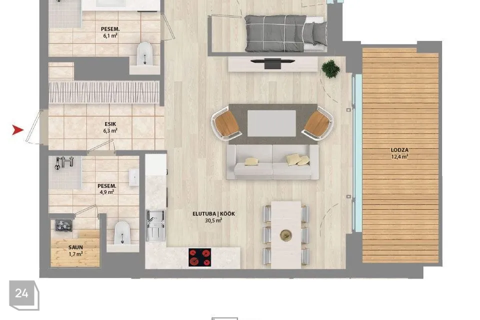 Дополнительное преимущество - балкон площадью 12,4 м², который идеально подходит для наслаждения утренним кофе или вечерними закатами. С балкона открывается красивый вид на Эстонский национальный музей.