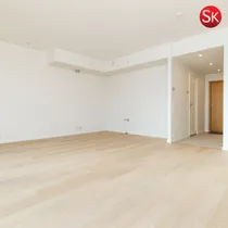 Внутренняя отделка квартиры выполнена в нейтральных тонах, стены покрашены. Полы в жилых помещениях покрыты качественным однополосным дубовым паркетом (матовый лак с эффектом браширования), в санузлах - современная керамическая плитка, душевые и смесители Hansgrohe. Унитазы Geberit.