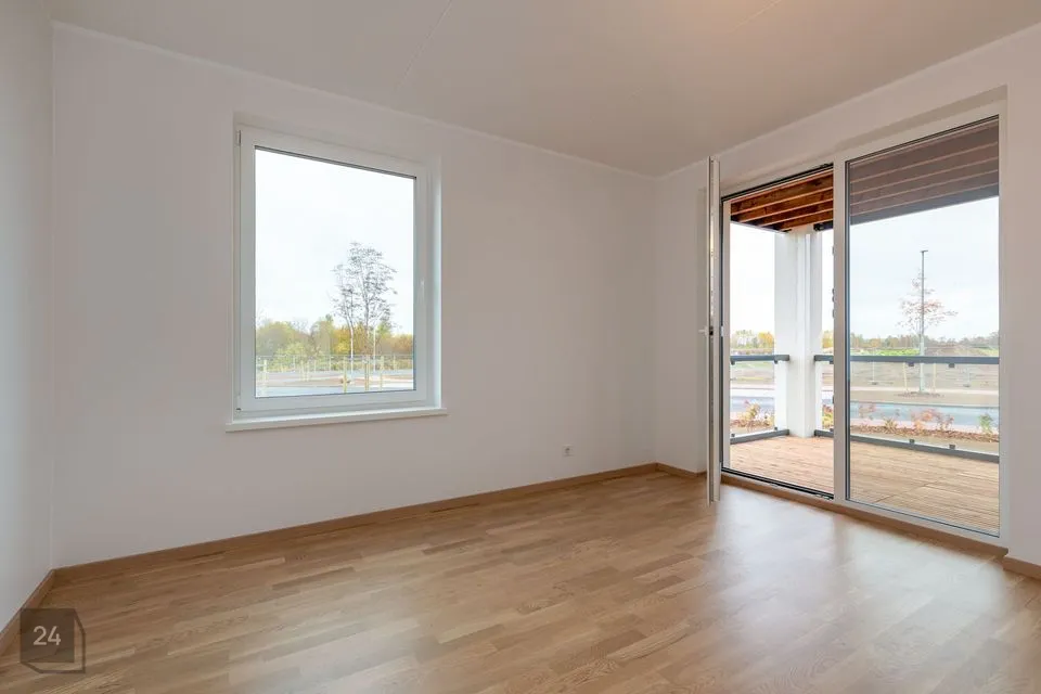 Korteris on valgusküllane avatud köögiga elutuba, kaks magamistuba ning duši- ja tualettruum. Elutoast ja ühest magamistoast on pääs suurele rõdule.