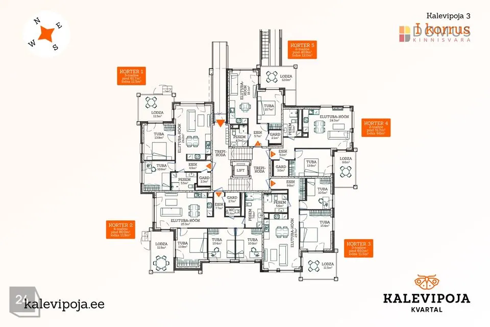 See on 3 korruseline LIFTIGA kortermaja kus kokku vaid 15 ekslusiivset 2-4 toalist korterit.