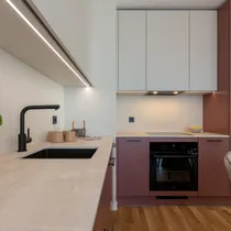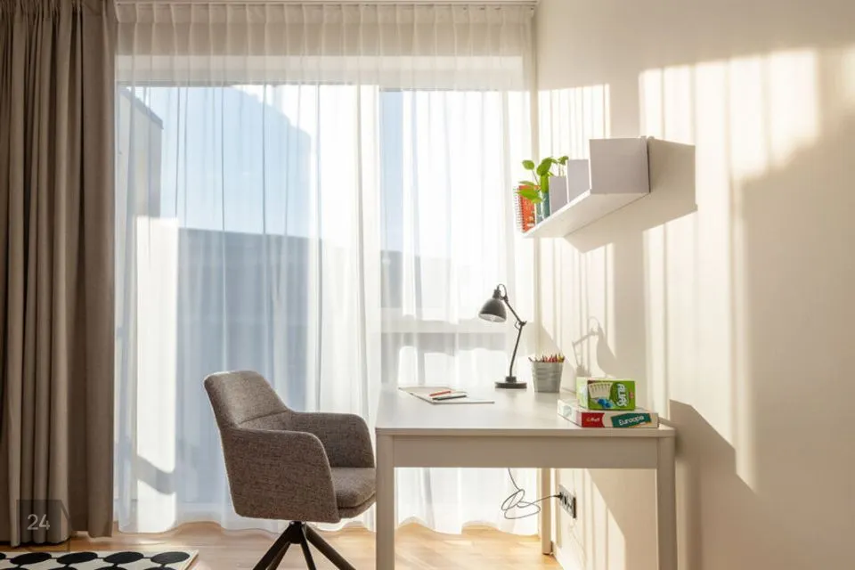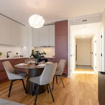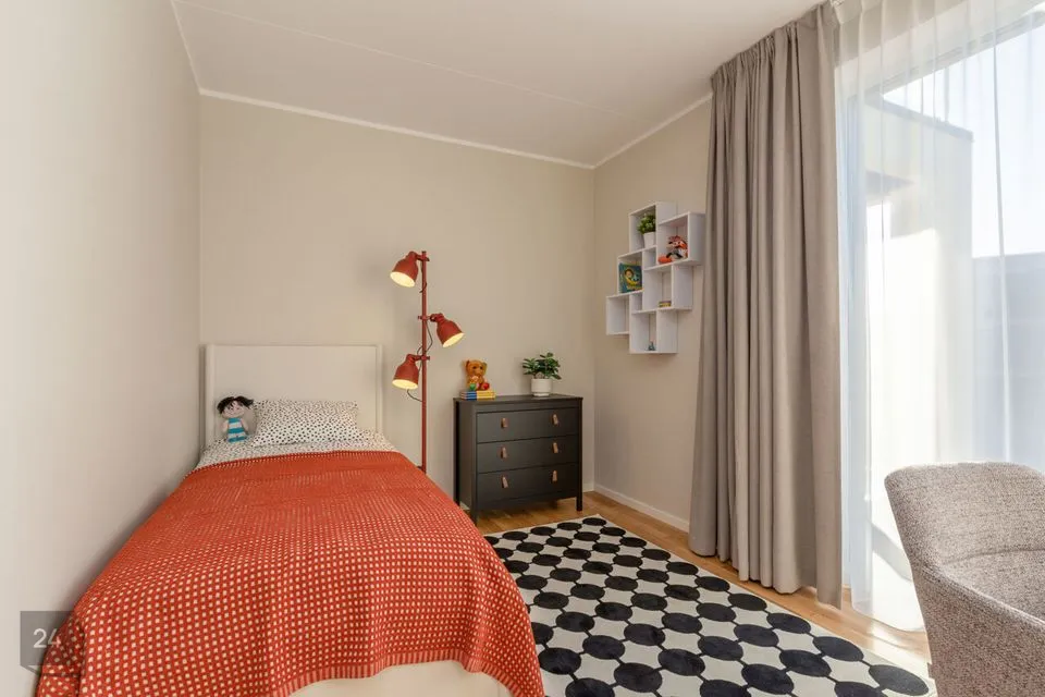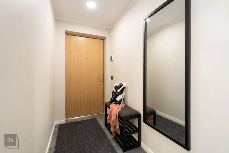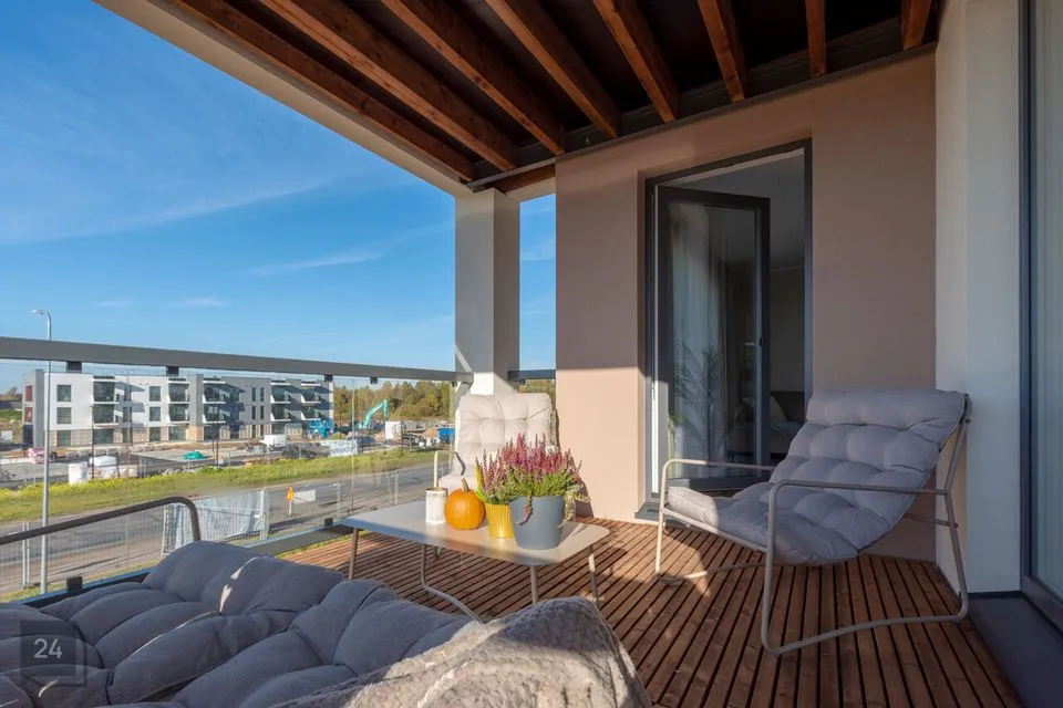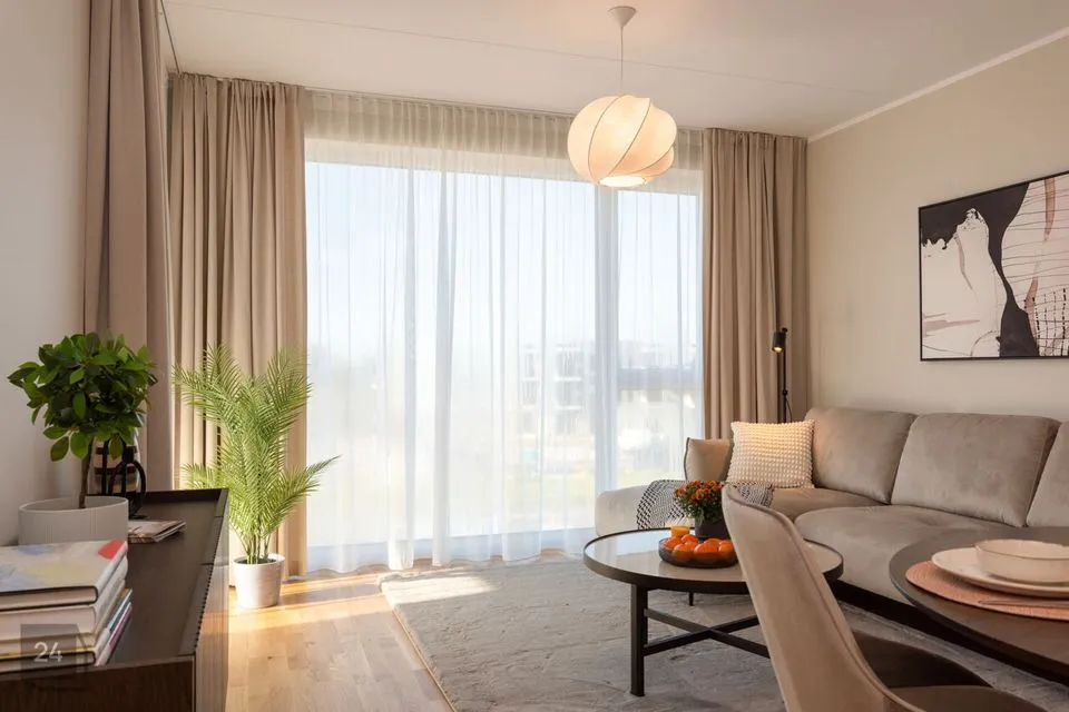 Suured aknad toovad korterisse palju valgust. Korteris on avar köök-elutuba (23,7 m²), kaks magamistuba, pesemisruum (5,6 m2) ja esik. Korterisse paistab nii hommiku kui ka päeva päike.