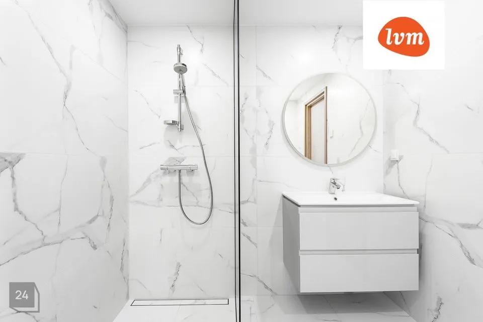 Vannitubades on kasutatud kvaliteetset Hansgrohe ja Villeroy & Boch sanitaartehnikat. Duširenn KARMAT L=800 Kaasaegsed ja maitsekad keraamilised plaadid.
