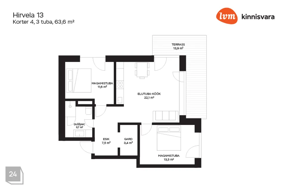 Igal korrusel asetsevad kolm kahetoalist ja kaks kolmetoalist korterit: