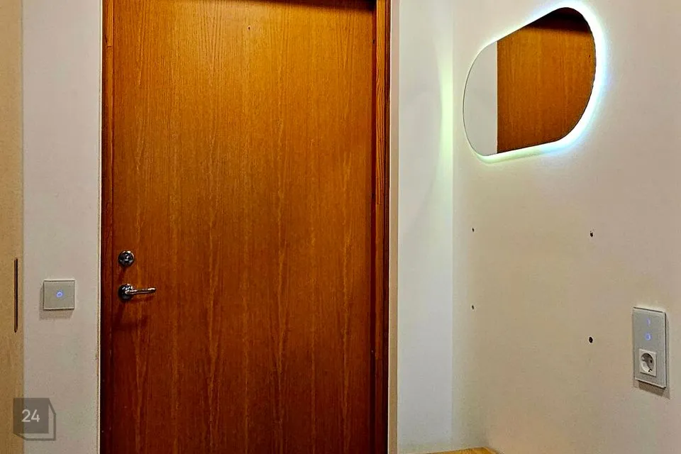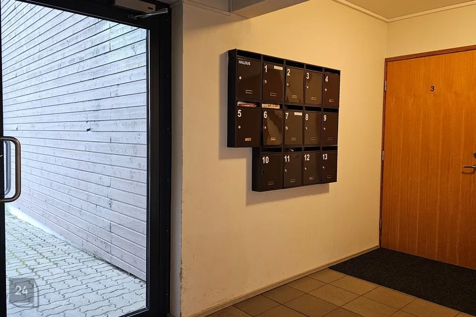 Koridoris on mahukas 3-e lükandukse ja sisustusega garderoob. Korterisse jäävad nii lambid, kardinad kui rulood.