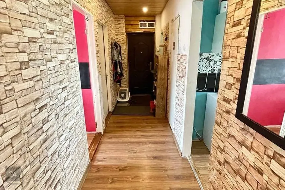 Korteri seinad on osaliselt tapeeditud, osaliselt värvitud, osaliselt lõppviimistlus puudub, põrandal laminaatparkett.