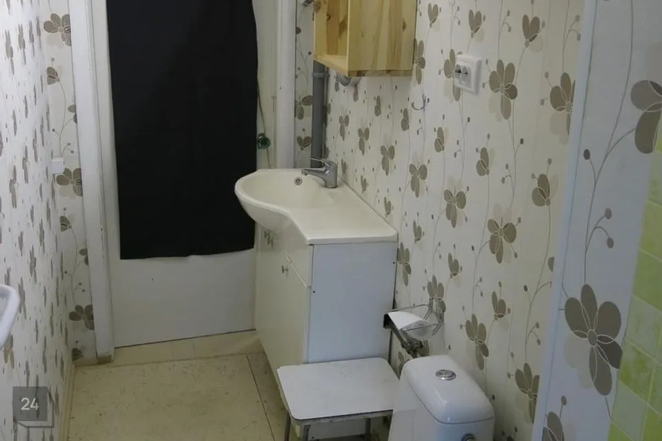 Vannitoas on duššinurk ja WC koos ja uksekohal asub boiler.