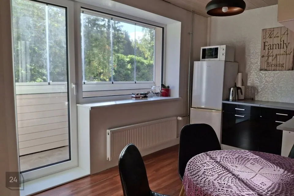 Asukoht on väga mõnus, köögist ja ühest magamistoast vaade metsatukale, elutoa aknast paistab piisaval kaugusel asuv laste mänguväljak.