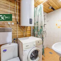 Maja sisenedes jõuate suurde esikusse, mis viib edasi avatud kööki. Köögis on pliit, kööginurk ning paremal käel paikneb WC ja vannituba ning panipaik.