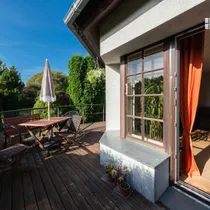 Üldiselt võib seda korterit minu subjektiivsel hinnangul nimetada kiire elutempoga inimese majaks - olemas on eramaja hüved (naabritega puutub kokku vaid paar seina), sh grillimisvõimalused, vaade kaunisse aeda, aiaga piiratud territoorium, mitmed panipaigad jms, kuid hoolitseb kogu korterist välja jääva eest KÜ poolt palgatud isik.