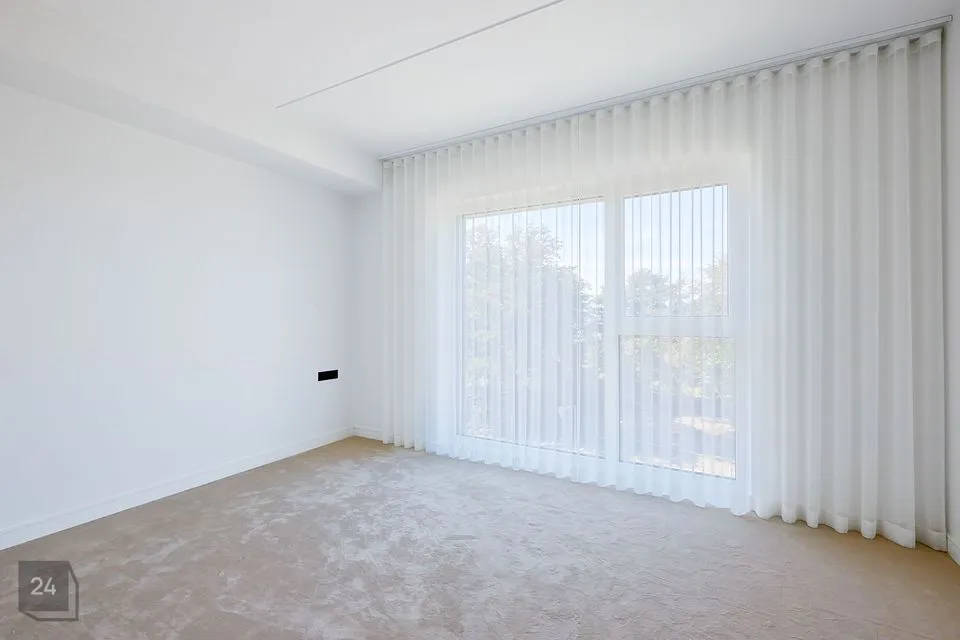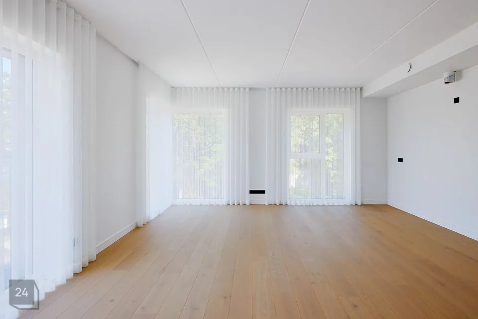 Selle korteri interjöör on kujundatud vastavalt siseviimistluspaketile Süvameri. Põrandaid katab kvaliteetne helehallis toonis tammeparkett BOENilt ning magamistubades pehme vaipkate. Vannitubades on kaunid liivamustriga plaadid, mida ilmestavad luksuslikud matt musta viimistlusega segistid.