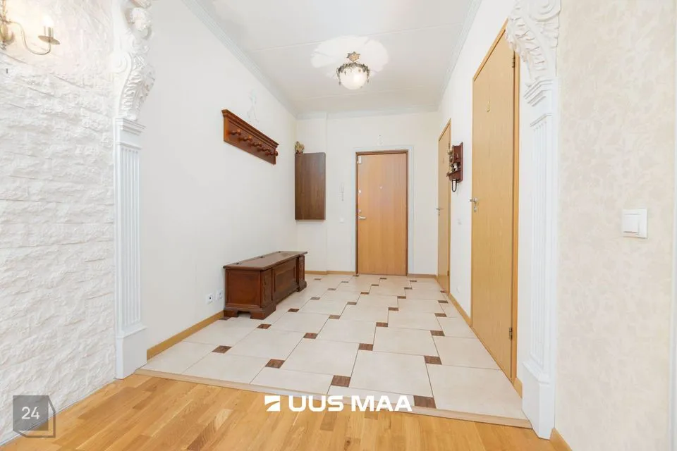 Korterisse sisse kõndides võtab teid vastu avar esik, mille põrandat katavad elegantsed keraamilised plaadid ja mida kaunistavad stiilsed dekoratiivsed pilastrid.