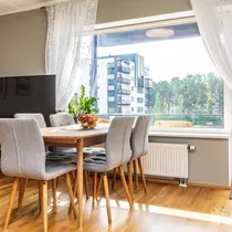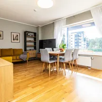 Köök on sisustatud köögimööbli ja tehnikaga (elektripliit, elektriahi, nõudepesumasin, õhupuhasti, külmik). Vannitoas on olemas vannitoamööbel ja pesumasin.