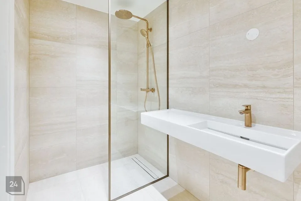 Selle korteri interjöör on kujundatud vastavalt siseviimistluspaketile Liivaluide. Põrandaid katab kvaliteetne naturaalne parkett BOENilt ning magamistubades pehme vaipkate. Vannitubades on kaunid liivamustriga plaadid, mida ilmestavad luksuslikud harjatud pronksi tooni segistid.