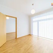 3 x pakettklaasiga plastikraamil akende ees on püstlamellkardinad firmalt Sunorek.