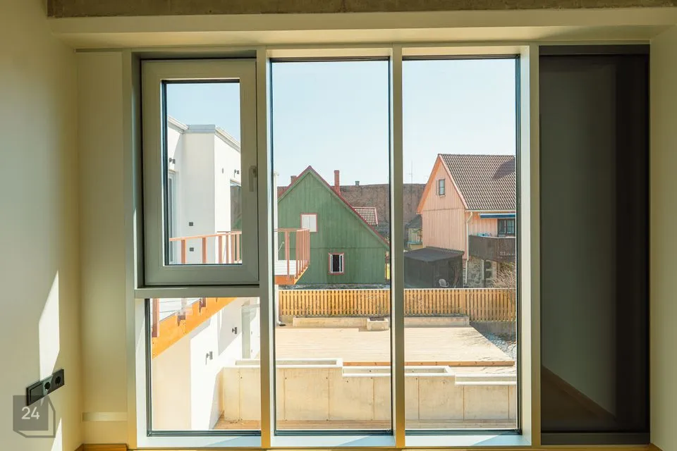 Läbi maja planeeriguga - 1 rõdu vaatega hoovi, magamistoa aken vaatega Arkaadia aeda.