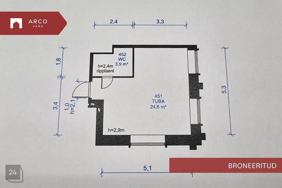 - Igas korteris on WC ja duširuum (elektriline põrandaküte)