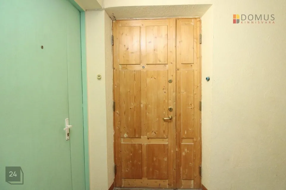 Ees on plastraamil aknad ning korteril on ees puidust välisuks.