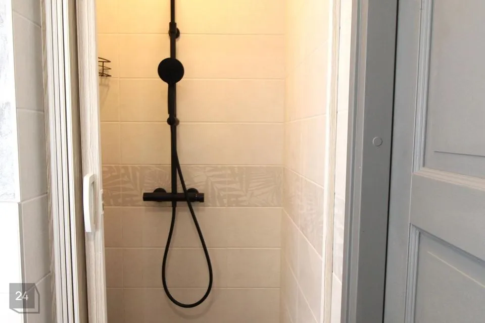 Olemas on valamukapp, peegelkapp, kraanikauss, WC ja dušinurk.