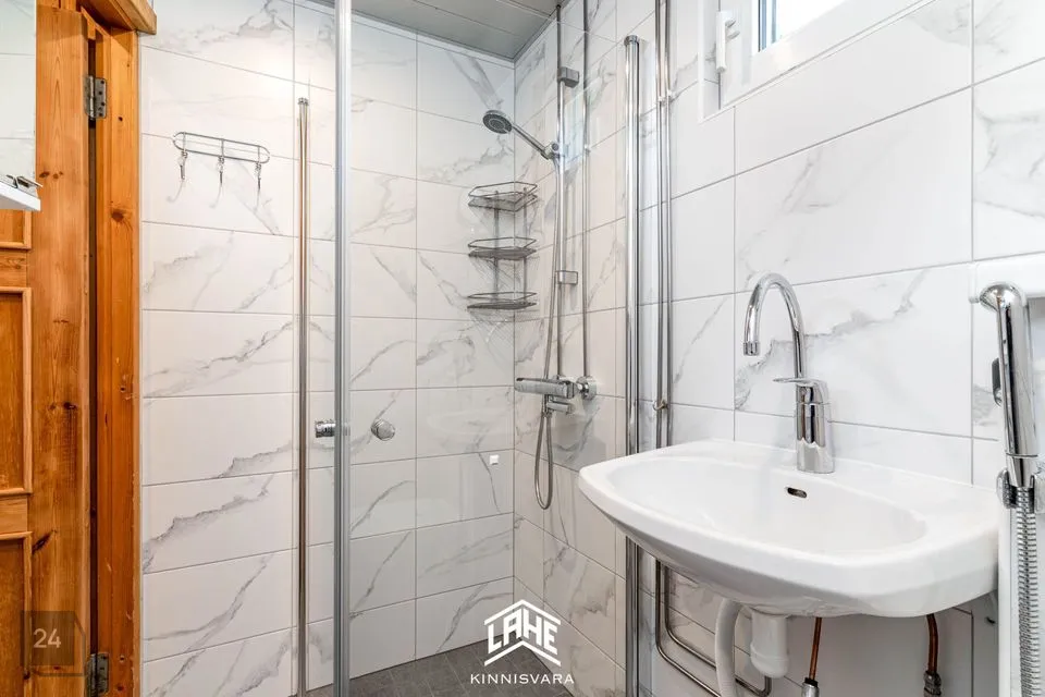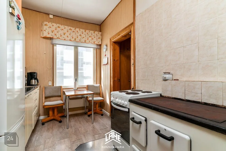 3. People who want to keep costs under control and need living space on the first floor. The apartment has stove heating and an air-to-air heat pump. In addition, electric underfloor heating in the bathroom and electric radiators in every room.