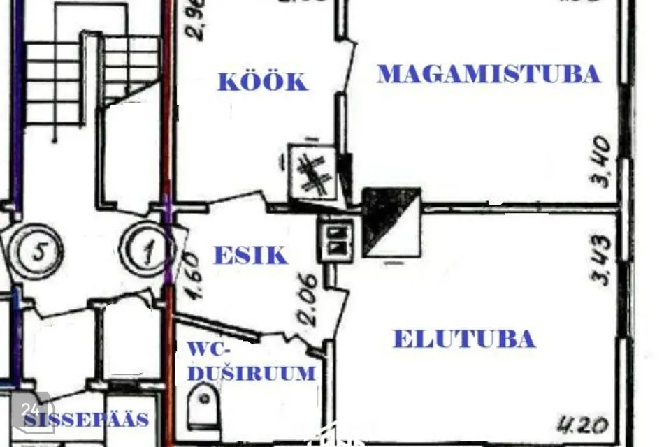 Stove heating, plus an air-to-air heat pump and electric underfloor heating in the WC-shower room. The apartment has package windows, the WC-shower room was renovated in 2023, and the air-to-air heat pump was installed in 2024.