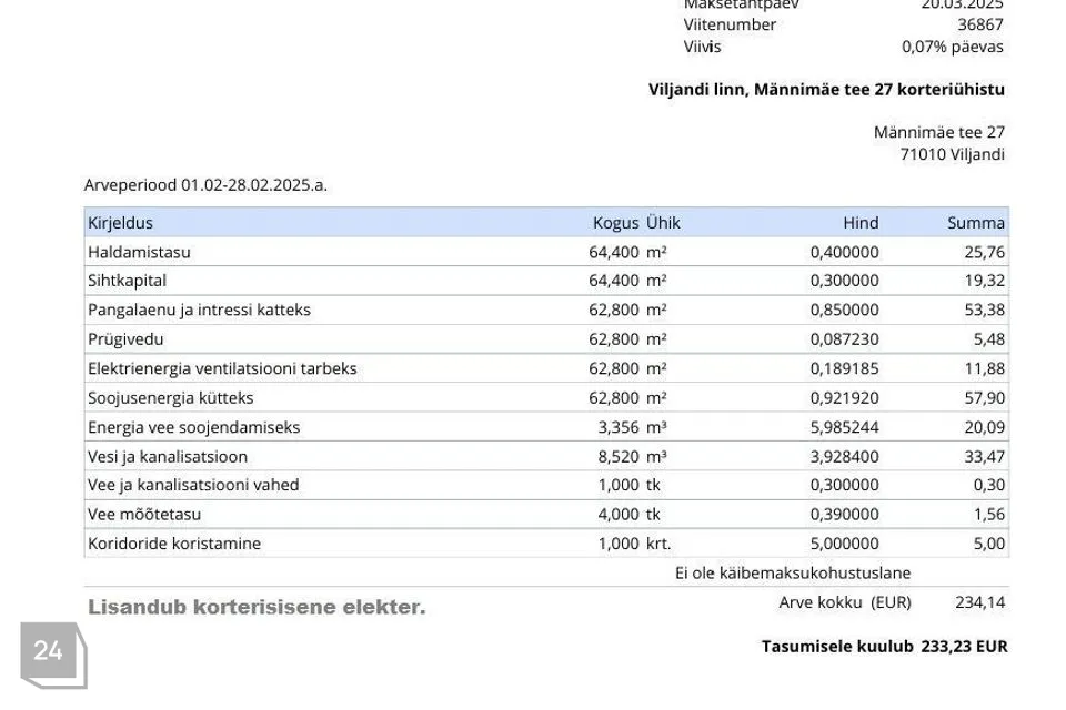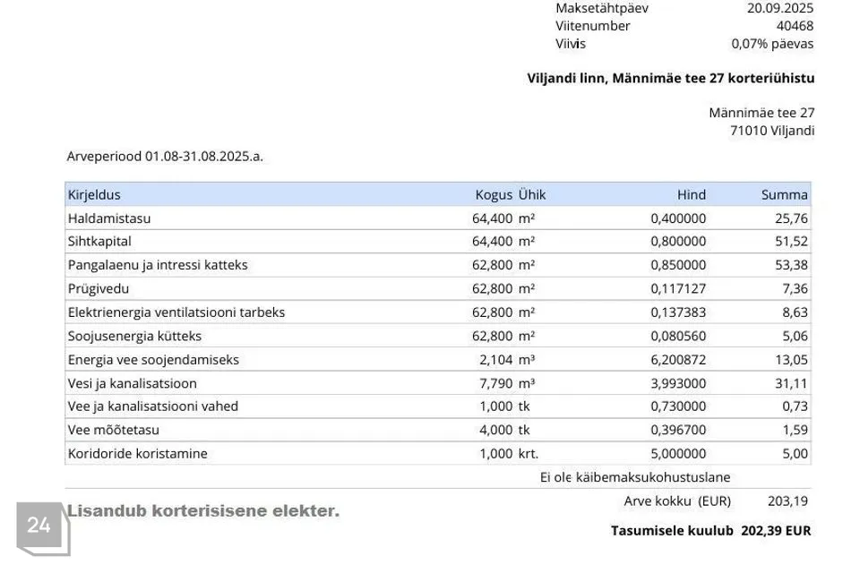 Korteriühistu poolt vahendatavatele teenustele lisandub korterisisese elektri tarbimise tasu. Elektri- ja internetilepingud sõlmib iga korteri omanik majas ise otse teenusepakkujaga.