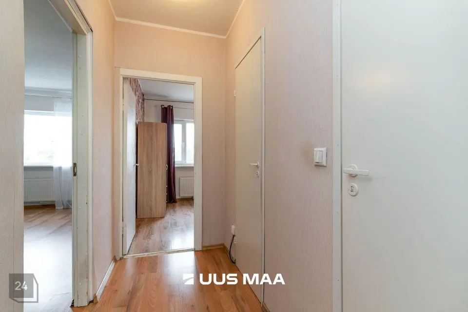Läbimajaplaneeringuga korteris on kolm tuba, köök, wc, vannituba, esik ning väike vahekoridor.