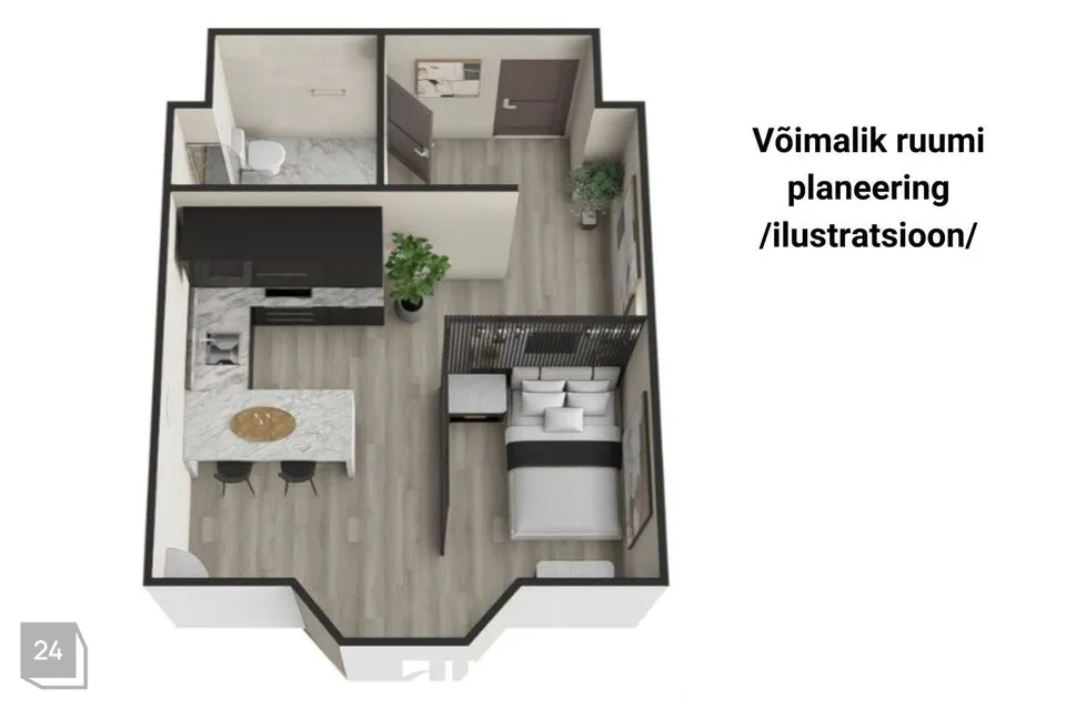 Korter paikneb neljandal korrusel ja selle üldpind on 36,5 m².