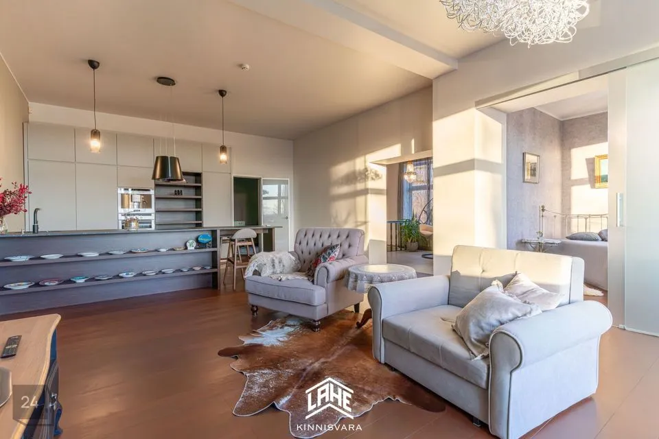 Siseviimistlus on värskelt uuendatud, mistõttu ei vaja korter kohest lisainvesteeringut. Sisse jäävad lühtrid, kardinad ja köögimööbel, ning kõrged laed lisavad avarust ja iseloomu. Kuna mööbel ei jää sisse, on uuel omanikul suurepärane võimalus kujundada kodu täpselt oma maitse järgi.