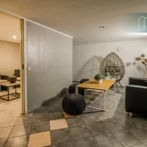 Tegemist on kaheksast ruumist koosneva korteriomandiga keldrikorrusel, mille pindala on kokku 127,3 m². Planeeringult koosneb see kahest saunaruumist, kahest pesuruumist, kahest eesruumist, väiksemast tööruumist, WC-st ja panipaigast. Lisaks on veel umbes 50 m² suurune väljaehitamata osa. Aknad asuvad kahes saunas ja kolm akend on paigaldatud kortermaja renoveerimistööde käigus väljaehitamatta osale. Soovi korral saab antud ruumidest ehitada endale mõnusa ja erilise korteri.