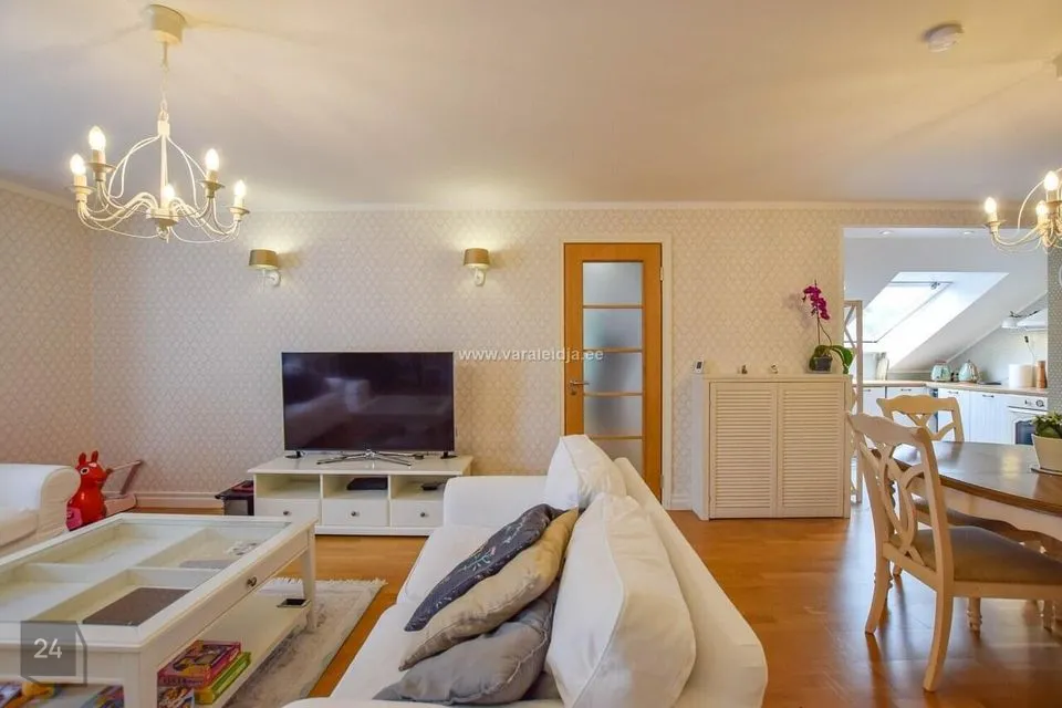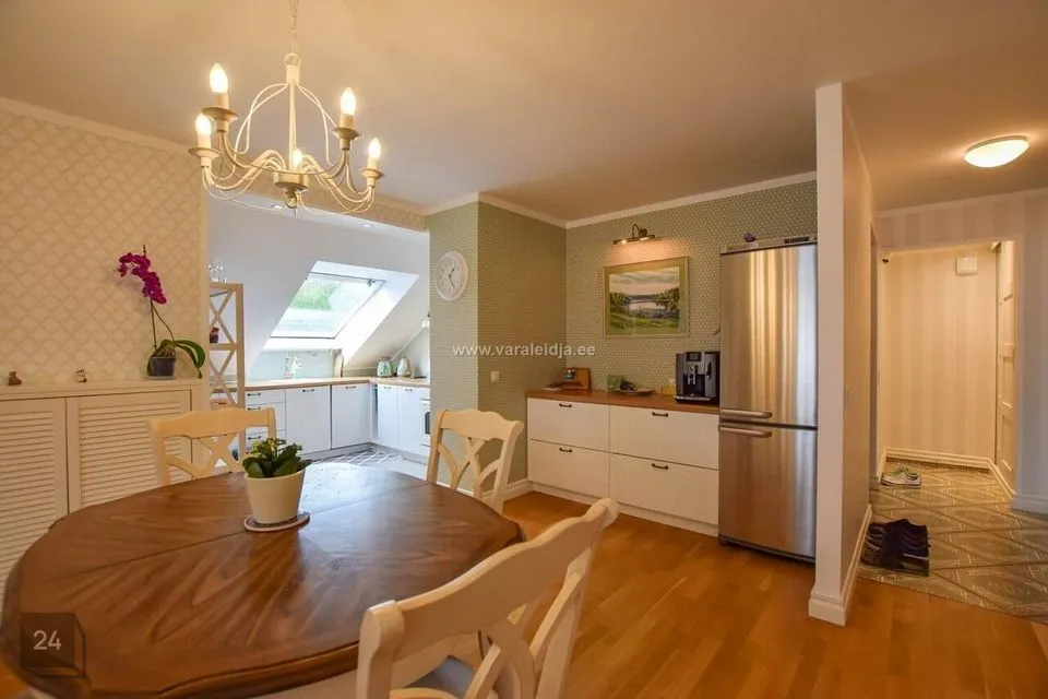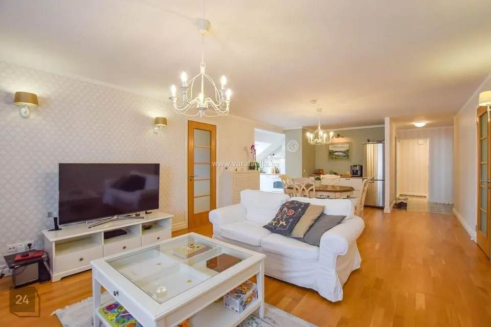 Mida ma Teile siis müügiks pakun? Pakkumises siis kolmetoaline kolmanda korruse korter, kus on palju valgust, avarust ja mõnusat positiivset energiat. Korteris ehitisregistri järgi üldpinda 74 m2, aga kuna on ka katusealused pinnad, siis omaniku sõnul tuleb sealt juurde veel ligikaudu 25 m2. (kokku ca 98 m2).
