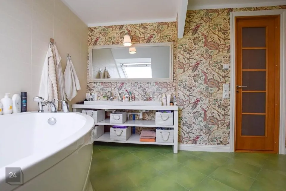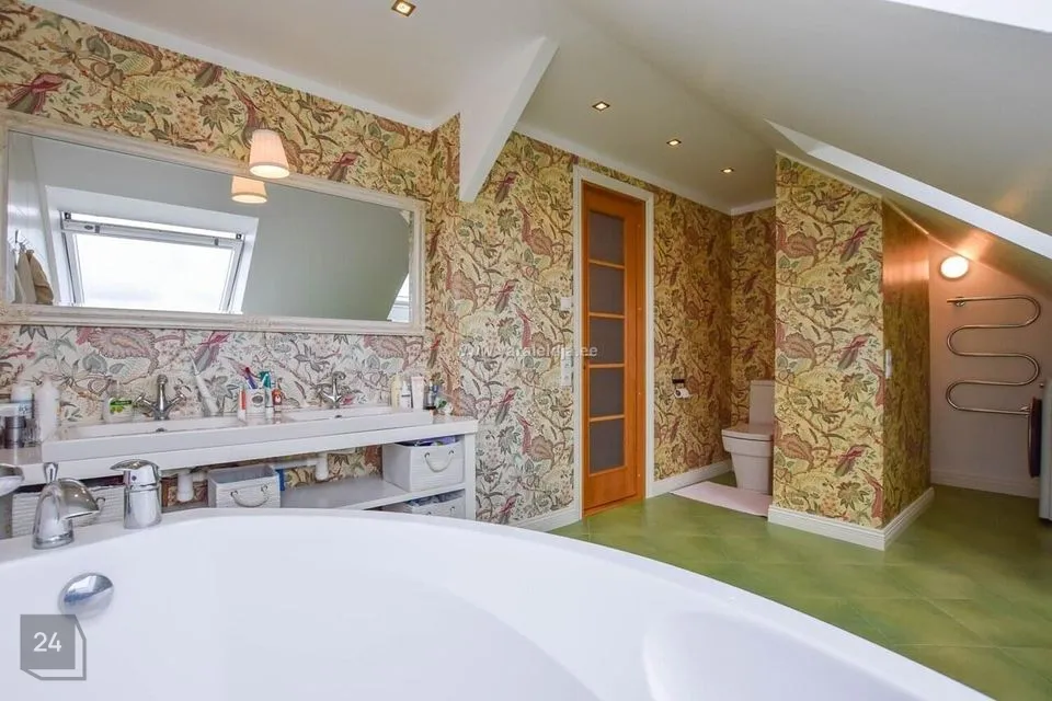 Tapeet on mahedates toonides. Põrandaid katab tammeparkett, mis kivivillaga alt soojustatud. Samuti on soojustatud laepealsed puistevillaga.