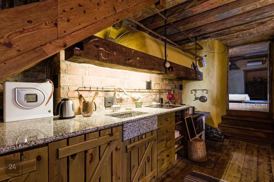 Hubases ja mugavas korteris võib leida palju originaalseid keskajast pärit detaile, näiteks sajandeid vanu sahvriuks ja keskaegse laemaalingu fragmendid. Ka teised uksed ja lukud on vanad ning kannavad möödunud ajastute märke.